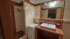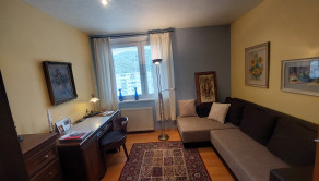 V kuchyni je kuchynská linka so spotrebičmi nový plynový sporák so sklokeramickou plotňou,elektrická rúra,umývačka a chladnička.Byt má 3 izby je tu ešte pracovňa alebo detská izba.Kúpeľňa je priestranná so sprchovým kútom aj rohovou vaňou.WC je samostatné zn.Geberit.