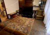 Dispozične pozostáva z izby a priestrannej vstupnej chodby aj s vešiakovými skriňami, aj so špajzou ďalej sa z chodby dostaneme do priestoru kuchyne, obývacej izby s balkónom z druhej chodby sa dostaneme do kúpeľne, toalety a spálne. V kuchyni je kuchyská linka so spotrebičmi a jedálenský stôl. Obývačka je priestranná presvetlená s veľkým trojoknom a výhľadom na hrádzu a Trenčiansky hrad. Izby sú samostatné - nepriechodné.