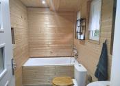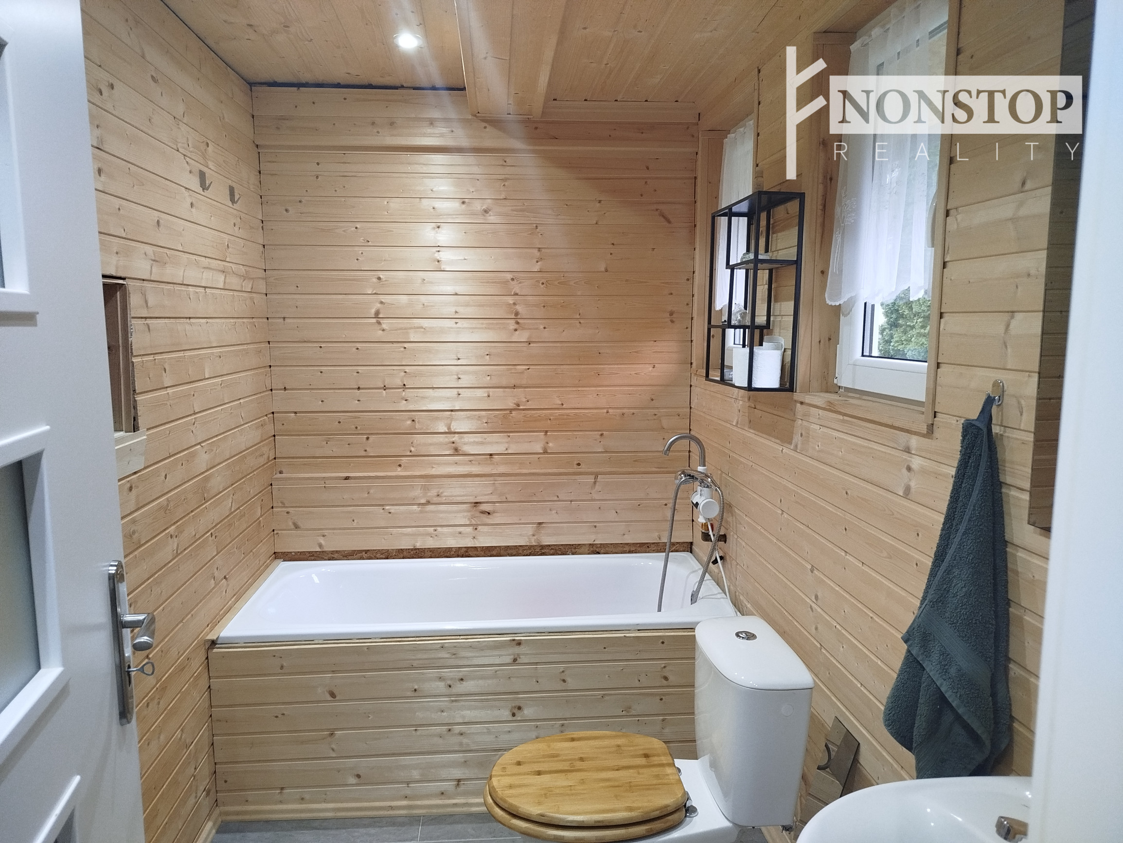 K domu je prístavba 2 izbový byt s kuchyňou,kúpeľňou a wc .Táto časť je novo rekonštruovaná s vlastným vchodom.Úžitková plocha je 45m2.Dovedené IS .